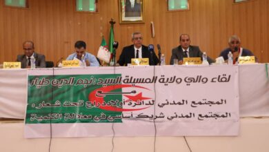 المسيلة/ ترأس اليوم الأحد 29 ديسمبر 2024 السيد نجم الدين طيار والي الولاية، بالمعهد الوطني المتخصص في التكوين المهني الشهيد داود صالح بالمسيلة، بحضور السادة: الأمين العام للولاية، مدير التكوين والتعليم المهنيين، مدير الصناعة، مدير التشغيل، مدير وكالة التشغيل، رئيس غرفة الفلاحة، إطارات ومديري معاهد ومراكز التكوين المهني والتمهين بالولاية، إجتماع اللجنة الولائية للشراكة من أجل المصادقة على مخطط الدخول المهني، دورة فيفري 2025.