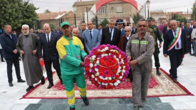 أين كانت البداية بالتوجه إلى مقبرة الشهداء ببلدية عين الحجل وبعد رفع العلم الوطني والاستماع للنشيد الوطني تم وضع إكليل من الزهور والترحم على أرواح الشهداء الطاهرة.