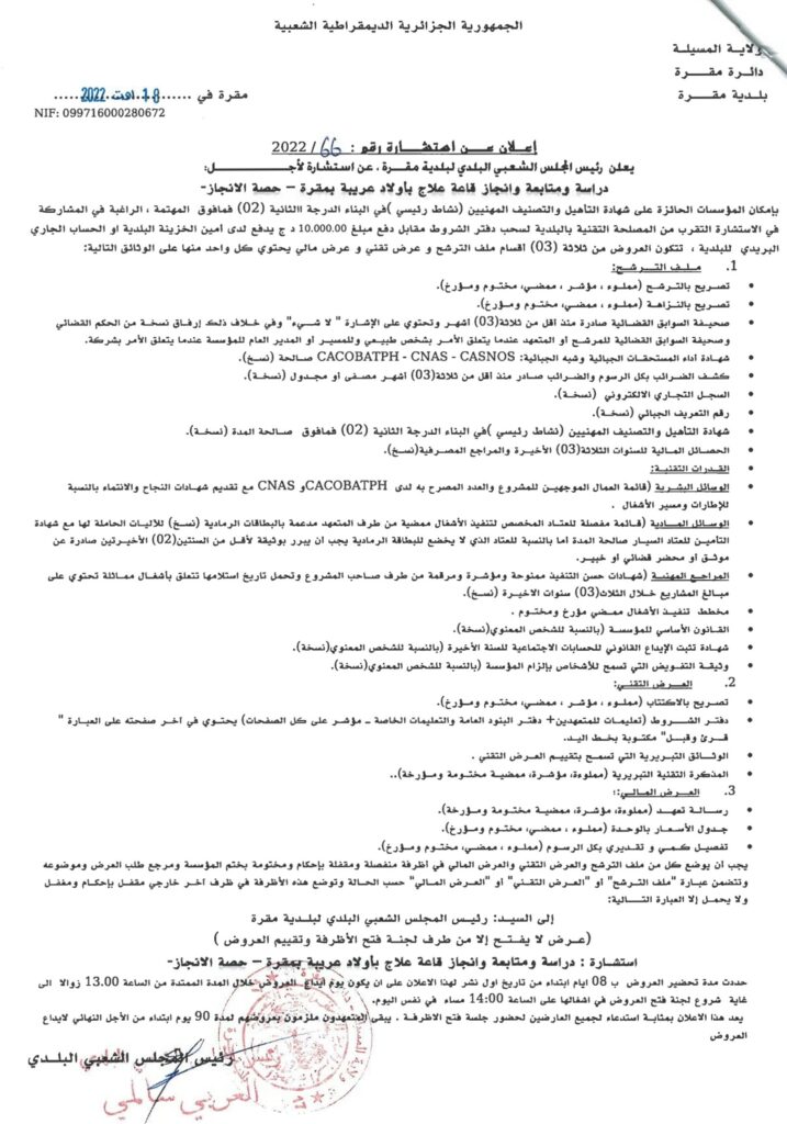 استشارة لأجل: دراسة ومتابعة وانجاز قاعة علاج بأولاد عريبة بمقرة-22 أغسطس، 20220 9 شاركها فيسبوك X مشاركة عبر البريد طباعة