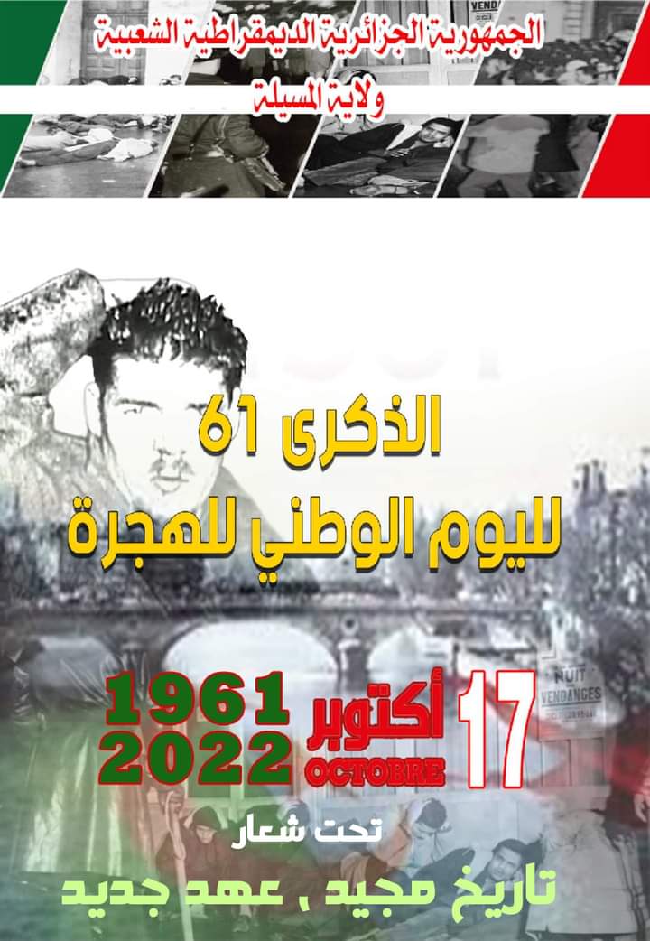 ولاية المسيلة تحيي الذكرى الحادية والستون 61 لليوم الوطني للهجرة المصادف ليوم 17 أكتوبر 1961 .. تحت شعار “تاريخ مجيد، عهد جديد “