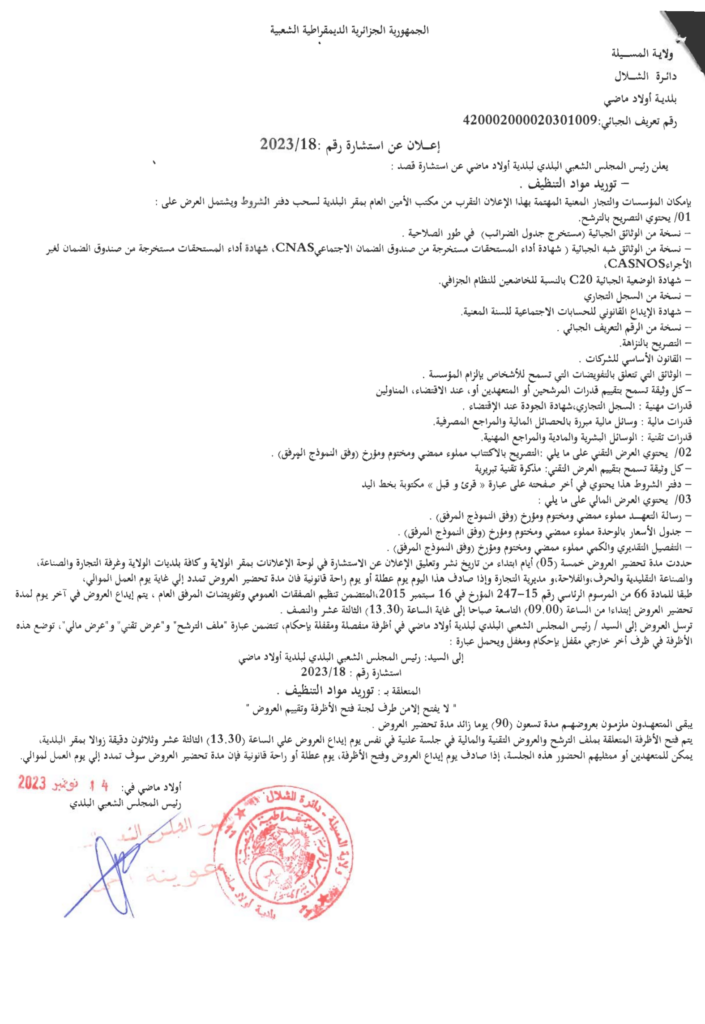 استشارة من أجل: توريد مواد التنظيف