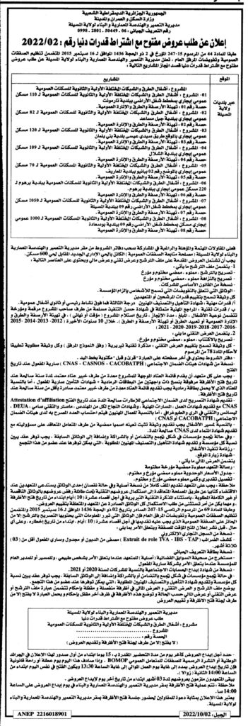 طلب عروض مفتوح مع اشتراط قدرات دنيا قصد انجاز المشاريع التالية:2 أكتوبر، 20220 34 شاركها فيسبوك X مشاركة عبر البريد طباعة
