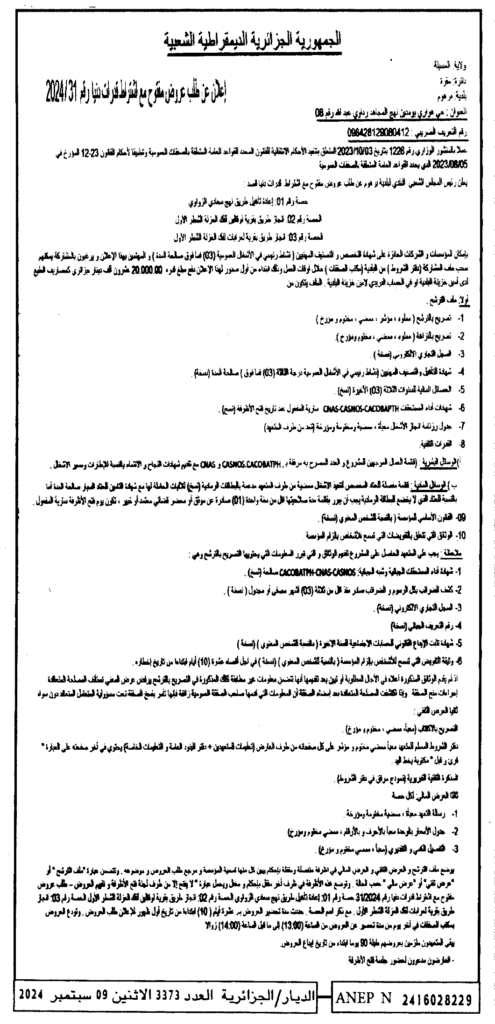 إعلان عن طلب عروض مفتوح 2024/31 بلدية برهوم