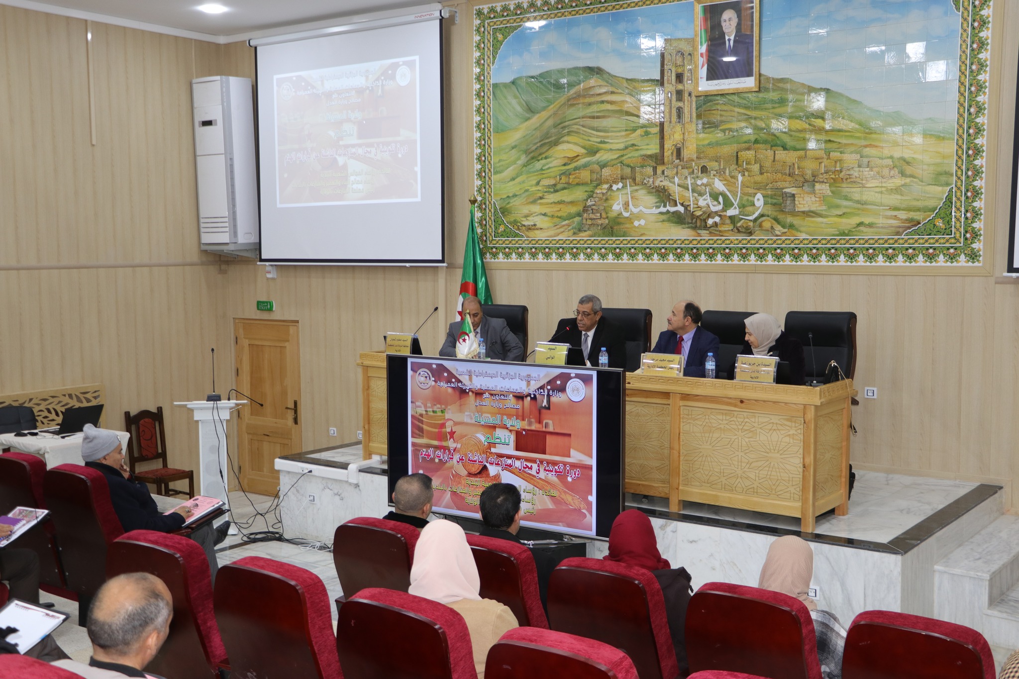 المسيلة/ في إطار التعاون بين مصالح وزارة الداخلية والجماعات المحلية والتهيئة العمرانية ومصالح وزارة العدل، أشرف اليوم الأربعاء 28 فيفري 2024 السيد نجم الدين طيار والي ولاية المسيلة على إنطلاق دورة تكوينية في مجال المنازعات الناشئة عن قرارات الهدم، من تنشيط وتأطير السادة: رئيس المحكمة الإدارية، محافظ الدولة لدى المحكمة الإدارية، رئيسة غرفة لدى المحكمة العليا لفائدة: