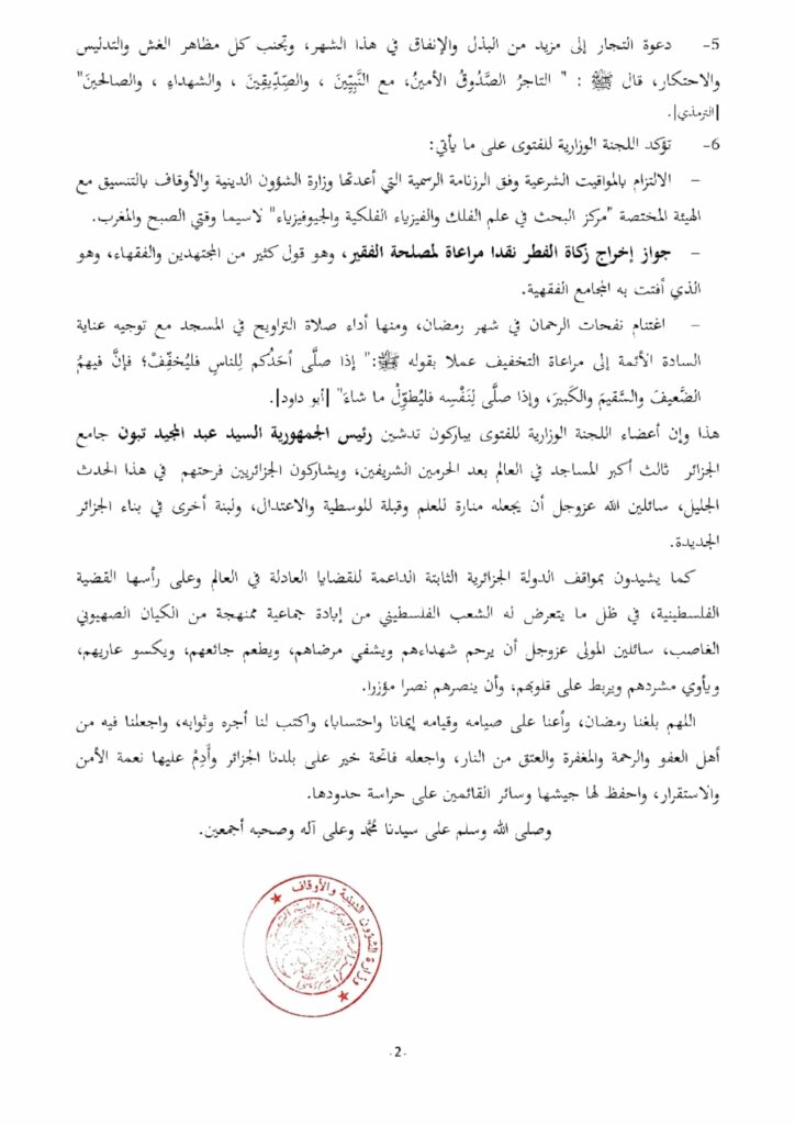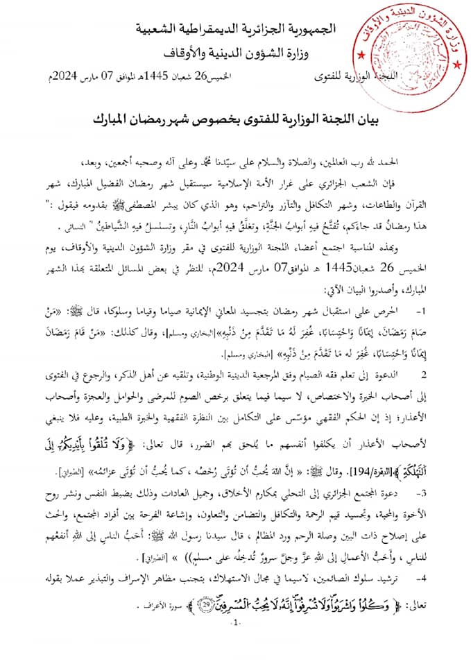 بيان/ اللجنة الوزارية للفتوى بخصوص شهر رمضان المبارك