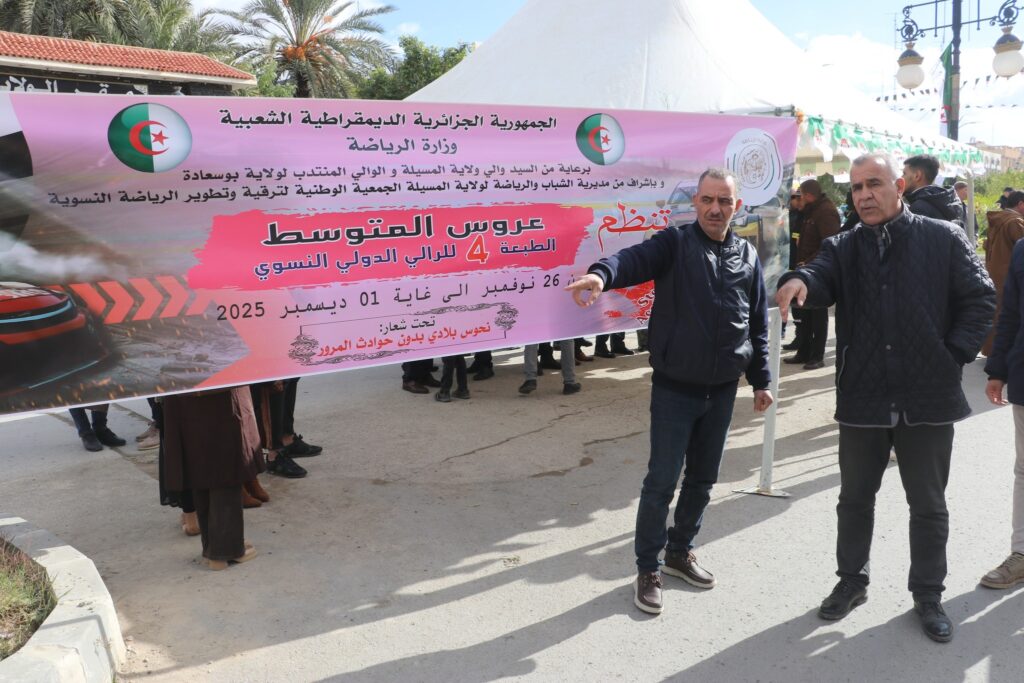 المسيلة/ أشرف اليوم الخميس 27 نوفمبر 2025 السيد نجم الدين طيار والي الولاية على استقبال الوفد المشارك في رالي السيارات الدولي النسوي عروس المتوسط “الطبعة الرابعة “4”، تحت شعار “نحوس بلادي بدون حوادث المرور”، المنظم من طرف الجمعية الوطنية لترقية وتطوير الرياضة النسوية برئاسة السيدة دنيا حجاب، حيث أعطى السيد وزير الرياضة، والسيدة وزيرة السياحة والصناعة التقليدية من أمام مقر أوبرا الجزائر، إشارة انطلاق سباق الانضباط مرحلة الجزائر – بوسعادة مرورا بمدينة المسيلة، وذلك بحضور السادة: رئيس المجلس الشعبي الولائي، أعضاء اللجنة الولائية للأمن، المندوب المحلي لوسيط الجمهورية، الأمين العام للولاية بالنيابة، رئيس الديوان، المفتش العام للولاية، رئيس دائرة المسيلة، مدير الشباب والرياضة لولاية المسيلة، رئيس المجلس الشعبي لبلدية المسيلة، أعضاء المجلس الشعبي الولائي، فعاليات الحركة الرياضية والمجتمع المدني، الاسرة الإعلامية.