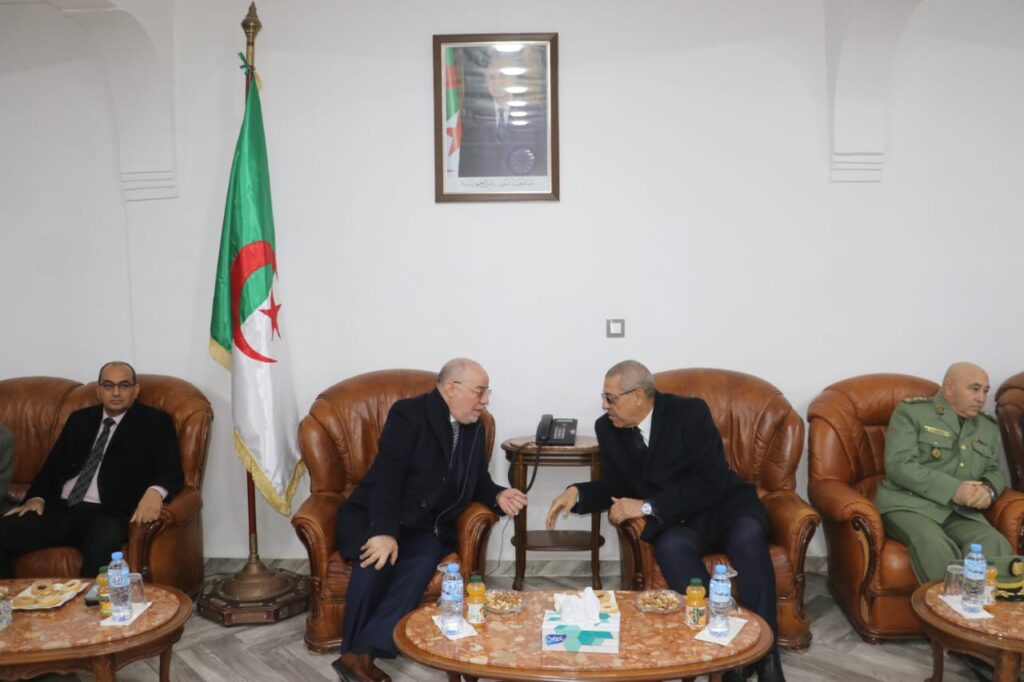 المسيلة/ مراسم استقبال السيد يوسف بلمهدي وزير الشؤون الدينية والأوقاف وأعضاء الوفد المرافق له من طرف السيد نجم الدين طيار والي الولاية بدار الضيافة مقر الولاية، السبت 29 نوفمبر 2025، بحضور السادة: رئيس المجلس الشعبي الولائي، أعضاء اللجنة الولائية للأمن، أعضاء البرلمان بغرفتيه، مدير الحماية المدنية، مدير الشؤون الدينية والأوقاف، رئيس دائرة المسيلة، رئيس المجلس الشعبي لبلدية المسيلة، إطارات وأسرة الشؤون الدينية والأوقاف والأسرة الإعلامية.