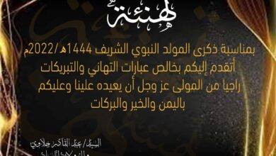 ”مُتَقَدِمِينَ فِي هَذَا اَلْمَقَام بِأَصْدَقَ عِبَارَات التَّهَانِيَ وَالتَّبْرِيكَات .. سَائِلًينَ المَوْلَى العَلِيُّ القَدِيرُ أَنْ يَجْعَلَ أَيَّامَكُمْ كُلُّهَا أَفْرَاحٌ وَأَعْيَادٌ وَأَنْ يُعِيدَهُ عَلَيْكُمْ وَعَلَيْنَا أَعْوَامًا عَدِيدَةً وَأَعْمَارَا مَدِيدَةً، وَأَن يَتَقَبَلَ اََللَهُ مِنَّا وَمِنْكُمْ صَالِحُ الأَعْمَالِ وَاَلْطَاعَاتْ.