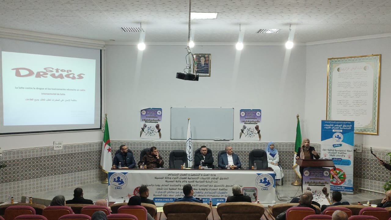 نظم اليوم الثلاثاء 24 ديسمبر 2024، الصندوق الوطني للتأمينات الاجتماعية – وكالة المسيلة، بالتنسيق مع المجلس الأعلى للشباب والمجتمع المدني، يوما دراسيا حول مكافحة المخدرات بمدرج خوجة الدراجي، بالمعهد الوطني شبه الطبي ساعد جلول بالمسيلة، بحضور السادة: المفتش العام للولاية بالنيابة، مدير الوكالة الولائية للصندوق الوطني للتأمينات الاجتماعية للعمال الأجراء بالمسيلة، المندوب المحلي لوسيط الجمهورية، عضو المجلس الأعلى للشباب، المراقب المالي بالولاية، ممثلي: المصالح الأمنية، مصالح الحماية المدنية، قطاع الصحة، مدراء فروع الوكالة عبر دوائر الولاية، إطارات الوكالة، ممثلي فعاليات المجتمع المدني والجمعيات ومواطنين.