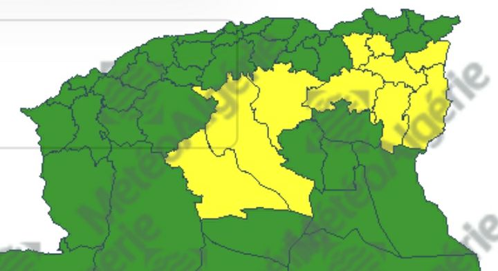 المسيلة/ على إثر النشرية الجوية الخاصة من الدرجة الأولى باللون الأصفر والتي تحذر من احتمالية تساقط أمطار رعدية (من 05 إلى 10 ملم) قد تكون مرفوقة بحبات برد عبر تراب الولاية والولايات المجاورة التالية : الجلفة. باتنة.