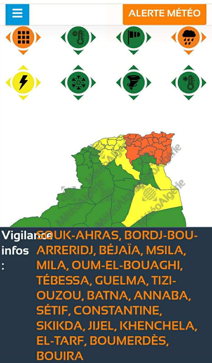 المسيلة/ على إثر النشرية الجوية الخاصة والتي تتوقع تواصل تساقط غزير للأمطار على إقليم الولاية والولايات المجاورة لولاية المسيلة وهي البويرة. برج بوعريريج. سطيف. باتنة. الجلفة. المدية، والتي تقدر ما بين 20 و40 ملم وقد تصل إلى 50 ملم.