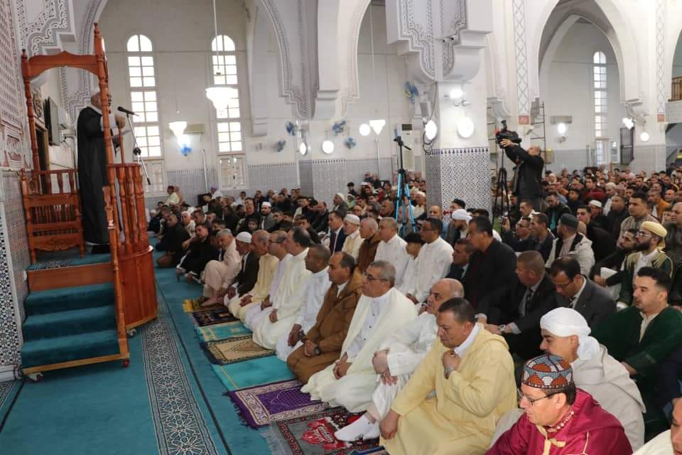 المسيلة/ أدى صبيحة اليوم الأربعاء 01 شوال 1445 هـ الموافق لـ 10 أفريل 2024 السيد نجم الدين طيار والي الولاية، صلاة عيد االفطر المبارك من مسجد مالك بن أنس بوسط مدينة المسيلة، بحضور السيد رئيس المجلس الشعبي الولائي، أعضاء اللجنة الولائية للأمن، أعضاء البرلمان بغرفتيه، مندوب وسيط الجمهورية، رئيس ديوان السيد الوالي، رئيس دائرة المسيلة، رئيس بلدية المسيلة، مدراء الهيئة التنفيذية، عدد من الإطارات من مختلف القطاعات، وجمع غفير من المواطنين، تم تأدية صلاة عيد الفطر في أجواء إيمانية روحانية، رفعت أكف الدعاء لله عز و جل بالغفران وقبول العبادات والأعمال الصالحة، وأن يعيده علينا وعلى الأمة الإسلامية قاطبة، والجزائر خاصة، بالخير واليمن والبركات والصحة والعافية والاستقرار والازدهار، بعد الصلاة تبادل السيد الوالي تهاني وتبريكات العيد مع جموع الحاضرين في أجواء مفعمة بالبهجة والسرور.