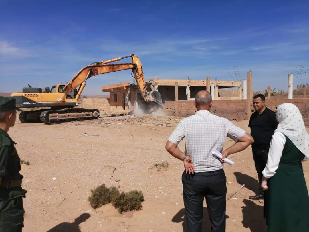 - العملية تأتى بعد الانتهاء من عمليات الهدم السابقة للسكنات التى تم اخلاؤها من قاطنيها الواقعة بإقليم بلدية المعاريف دائرة الشلال.