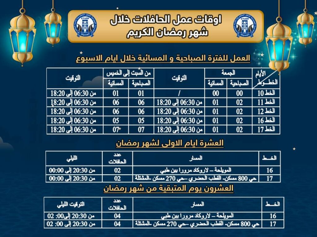 أوقات عمل الحافلات لمدينة المسيلة خلال شهر رمضان الكريم