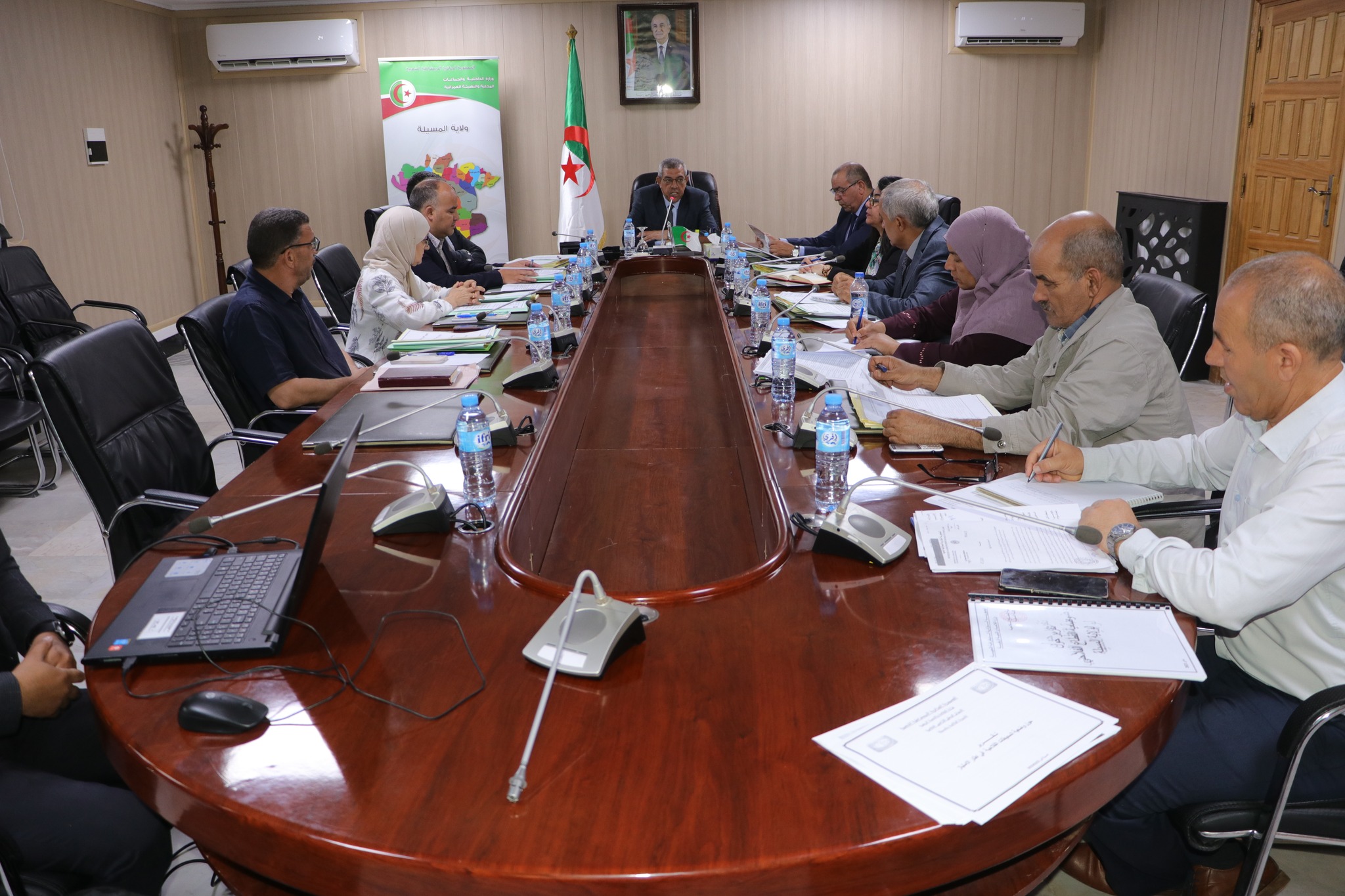 المسيلة/ ترأس صبيحة اليوم الثلاثاء 28 ماي 2024 السيد نجم الدين طيار والي الولاية اجتماع اللجنة التقنية لترقية الاستثمار الفلاحي، بحضور السيد الأمين العام للولاية، السيد المدير العام للديوان الوطني للأراضي الفلاحية، وكل من السيدات والسادة: مديرة أملاك الدولة، مدير المصالح الفلاحية، مدير وحدة الديوان الوطني للأراضي الفلاحية بالولاية، مدير مسح الأراضي والحفظ العقاري، مدير الموارد المائية، إطارات الديوان الوطني للأراضي الفلاحية، رؤساء المصالح.