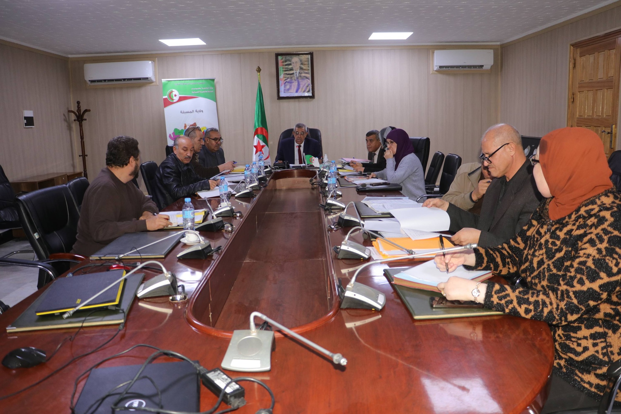 المسيلة/ في إطارمتابعة تنفيذ عملية تطهير العقار الفلاحي عبر مختلف برامجه، تطبيقا لأحكام المنشور الوزاري المشترك رقم 02 المؤرخ في 01 جوان 2025، المتضمن تطهير العقار الفلاحي التابع للأملاك الخاصة للدولة في إطار مختلف صيغ المنح والاستغلال، ترأس اليوم الأحد 21 ديسمبر 2025 السيد نجم الدين طيار والي ولاية المسيلة، إجتماع اللجنة الولائية المكلفة بمتابعة تنفيذ عملية تطهير العقار الفلاحي عبر مختلف برامجه، واللجنة الولائية لترقية الإستثمار الفلاحي، بقاعة الاجتماعات أحمد الغازي بمقر الولاية، بحضور السادة: الأمين العام للولاية، مدير التقنين والشؤون العامة، مديرة املاك الدولة، مديرة المصالح الفلاحية، مدير مسح الأراضي والحفظ العقاري، مدير الري، مدير الديوان الوطني للأراضي الفلاحية بالولاية، ممثل رئيس الغرفة الفلاحية، رؤساء المصالح وملحقون بالديوان.