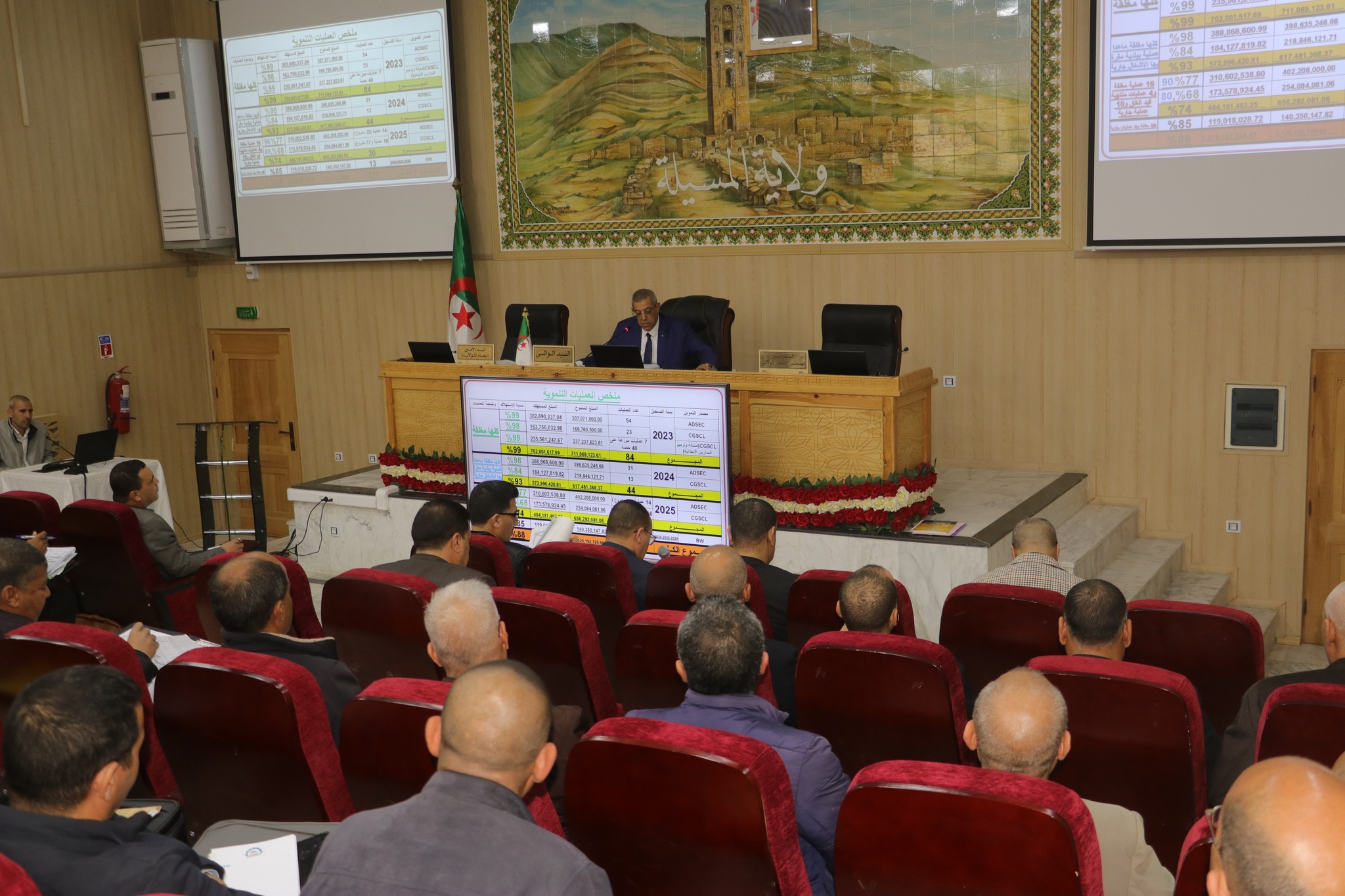 المسيلة/ ترأس اليوم الخميس 05 مارس 2026 السيد نجم الدين طيار والي الولاية إجتماعا تنسيقيا بقاعة الإجتماعت نور الدين صحراوي بمقر الولاية، بحضور السادة: مدير الإدارة المحلية، رئيس دائرة مقرة، رئيس دائرة الشلال، رئيس دائرة عين الحجل، مدير البرمجة ومتابعة الميزانية، أمين خزينة الولاية، المراقب الميزانياتي، مديرة أملاك الدولة، مديرة البيئة، مديرة السكن، مدير التعمير والهندسة المعمارية والبناء، مدير الأشغال العمومية، مدير التجارة، مدير التجهيزات العمومية، مدير الري، مدير الصحة، مدير الطاقة، مدير النقل، مدير الشباب والرياضة، مدير البريد والمواصلات السلكية واللاسلكية، مدير مسح الأراضي والحفظ العقاري، رؤساء المجالس الشعبية لبلديات دوائر مقرة الشلال وعين الحجل، الأمناء العامون لبلديات دوائر مقرة الشلال وعين الحجل، مدير ديوان الترقية والتسيير العقاري بالمسيلة، مدير شركة توزيع الكهرباء والغاز بالمسيلة، مدير المؤسسة الولائية لتسيير مراكز الردم التقني بالمسيلة، مدير وحدة الجزائرية للمياه بالمسيلة، مديرة ديوان التطهير بالمسيلة، مدير المؤسسة الولائية لتسيير وصيانة المساحة الخضراء مسيلة خضراء، المراقب الميزانياتي بمقرة، المراقب الميزانياتي للشلال، أمين خزينة ما بين البلديات الشلال، أمين خزينة ما بين البلديات مقرة، أمين خزينة ما بين البلديات عين الحجل، رؤساء الأقسام الفرعية، مدير بنك السكن بالمسيلة، مدير هيئة الرقابة التقنية للبناء (CTC)، رؤساء المصالح وملحق بالديوان.
