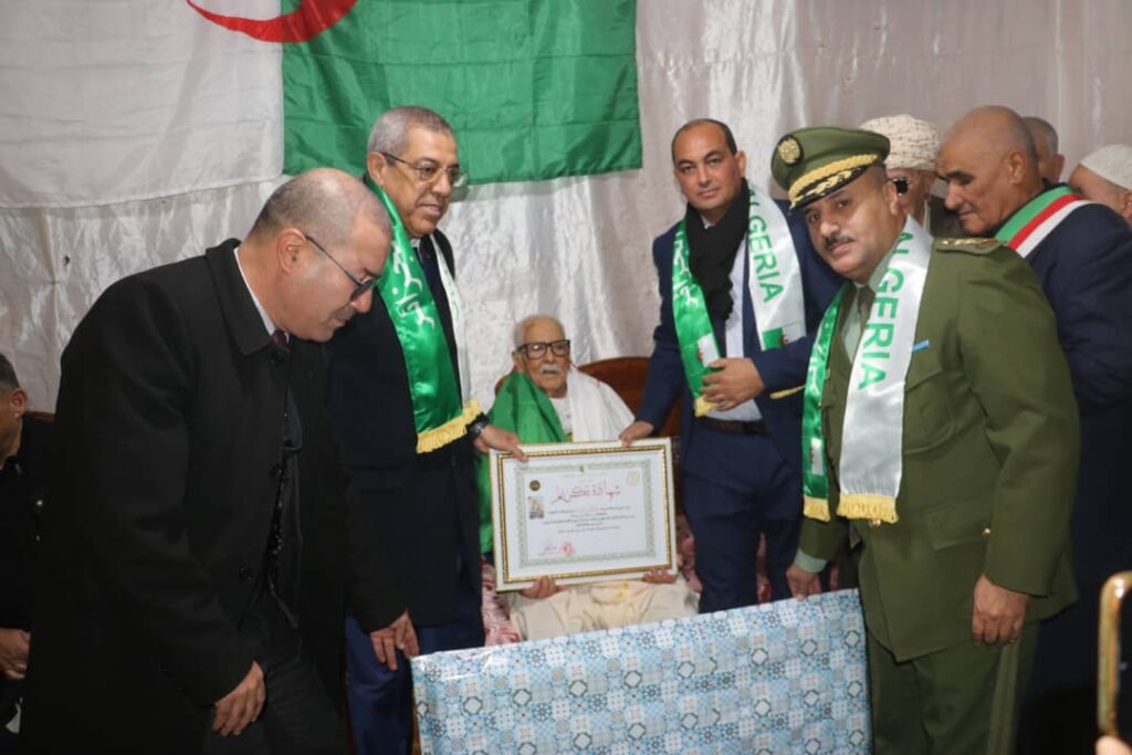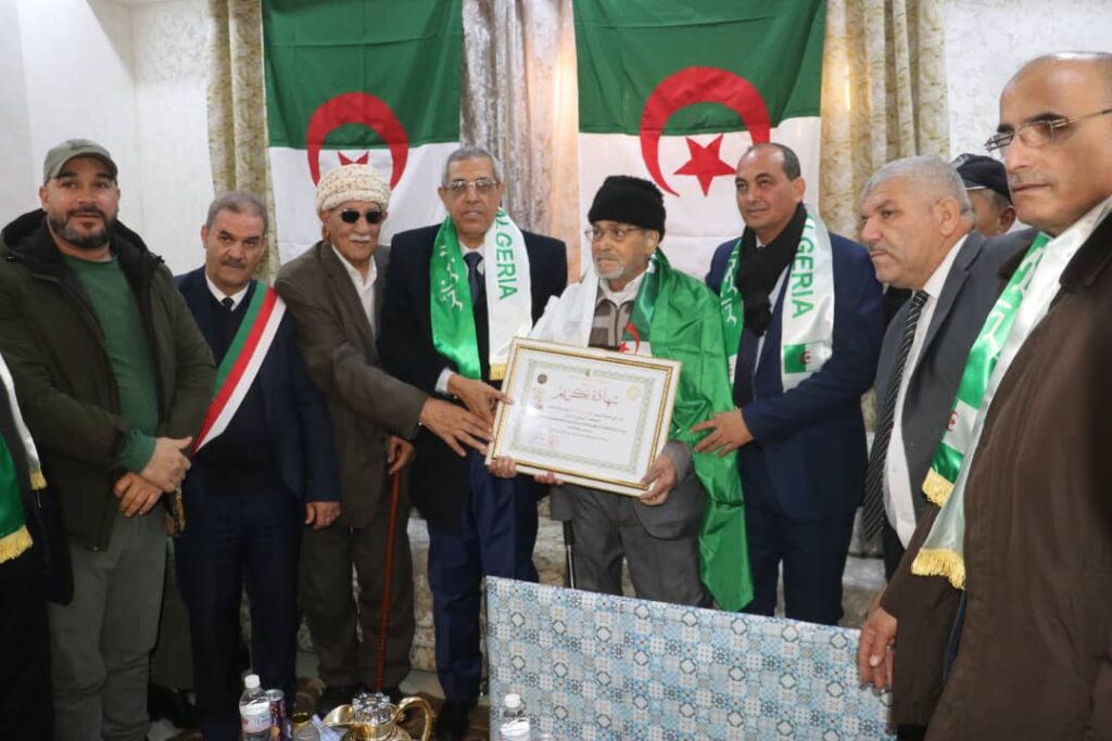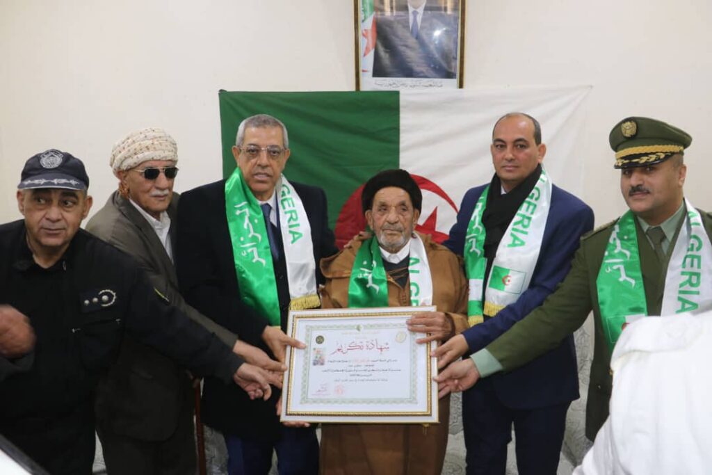 - زيارة المجاهد يوسفي الذوادي بن أحمد بمسكنه للاطمئنان على صحته وتكريمه بالمناسبة.