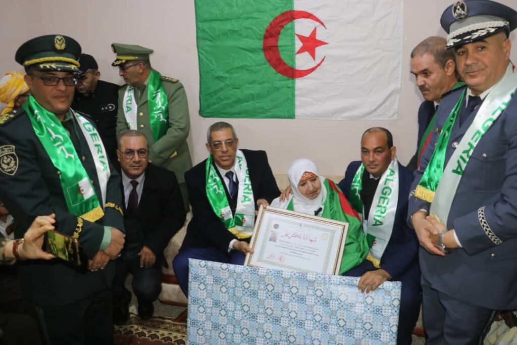 - زيارة السيدة قرساس فطيمة ـرملة الشهيد شاكي البشير بمسكنها للاطمئنان على صحتها وتكريمها بالمناسبة.