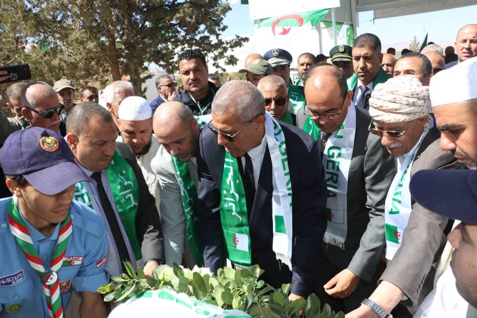 المسيلة/ أشرف اليوم الجمعة 28 مارس 2025 السيد نجم الدين طيار والي الولاية برفقة ممثل السيد وزير المجاهدين وذوي الحقوق، السيد مدير المركز الوطني للدراسات والبحث في المقاومة الشعبية والحركة الوطنية وثورة أول نوفمبر 1954، على مراسيم إحياء الذكرى 66 (1959 – 2025) لاستشهاد العقيدين عميروش وسي الحواس رحمهما الله، التي تجري فعالياتها بمقبرة الشهداء بجبل ثامر بلدية سيدي امحمـد بدائرة عين الملح، بحضور السيد رئيس المجلس الشعبي الولائي، السيد الوالي المنتدب لبوسعادة، السادة أعضاء اللجنة الولائية للأمن، أعضاء البرلمان بغرفتيه، ممثل المنظمة الوطنية للمجاهدين، الأمين الولائي لمنظمة المجاهدين بالمسيلة، المندوب المحلي لوسيط الجمهورية، أعضاء المجلس الأعلى للشباب، ممثل المرصد الوطني للمجتمع المدني، مدير الجامعة، ممثل مديرية المجاهدين، مدراء الهيئة التنفيذية، رئيس دائرة عين الملح، رؤساء الدوائر، رؤساء المجالس الشعبية لبلديات دائرة عين الملح، رؤساء المجالس الشعبية البلدية، السلطات المحلية لدائرة عين الملح، الأسرة الثورية، الكشافة الإسلامية، الأسرة الإعلامية ومختلف فعاليات المجتمع المدني والحركة الجمعوية وجمع غفير من المواطنين، أين كانت البداية بالتوجه لمقبرة الشهداء بجبل ثامر ببلدية سيدي امحمـد دائرة عين الملح، بعد رفع العلم الوطني والاستماع للنشيد الوطني، تم وضع إكليل من الزهور وقراءة فاتحة الكتاب على أرواح شهدائنا الأبرار، ليلقي السيد ممثل بلدية سيدي امحمـد كلمة ترحيبية بالسادة الحضور.