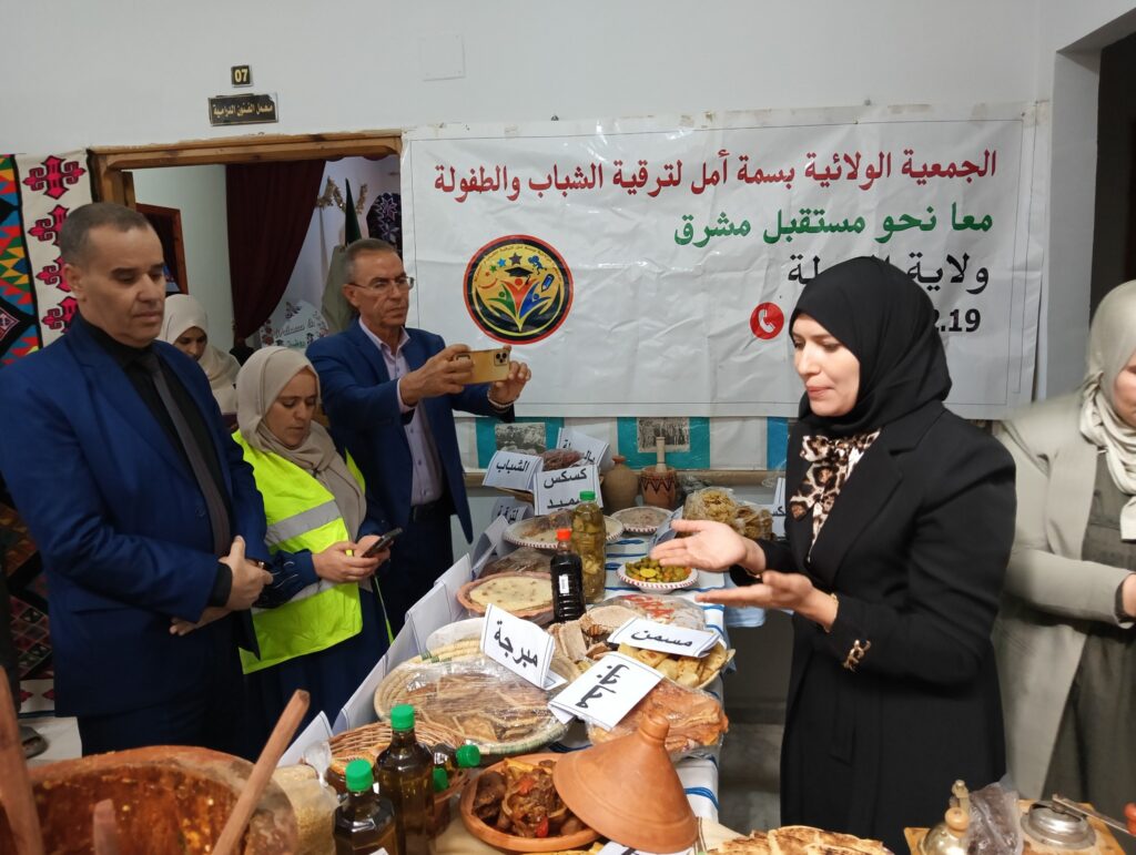 المسيلة/ أشرف نهار اليوم الخميس 23 اكتوبر 2025 السيد المفتش العام للولاية باسم السيد نجم الدين طيار والي الولاية، على فعاليات احياء مناسبة اليوم العالمي للمرأة الريفية بالمركز الثقافي بلدية المعاضيد دائرة اولاد دراج المصادف للخامس عشر أكتوبر من كل سنة، تحت شعار “تمكين المرأة الريفية من أجل تنوع فلاحي وإقتصادي محلي واعد”، بحضور كل من السادة: رئيس الدائرة، مدير النشاط الاجتماعي والتضامن، رئيس بلدية المعاضيد، المناسبة من تنظيم مديرية النشاط الاجتماعي والتضامن لولاية المسيلة، بالتنسيق مع مختلف القطاعات الشريكة، حيث قام السيد المفتش العام رفقة الوفد المرافق بزيارة كافة أجنحة المعرض، كما استمع الى شروحات وافية لتدخلات وانشغالات النساء الريفيات المشاركات في التظاهرة.