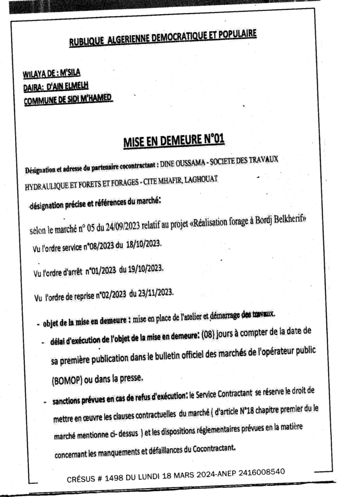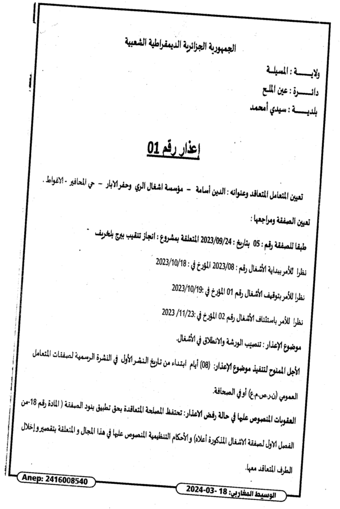 إعذار رقم 01/ بلدية سيدي امحمد