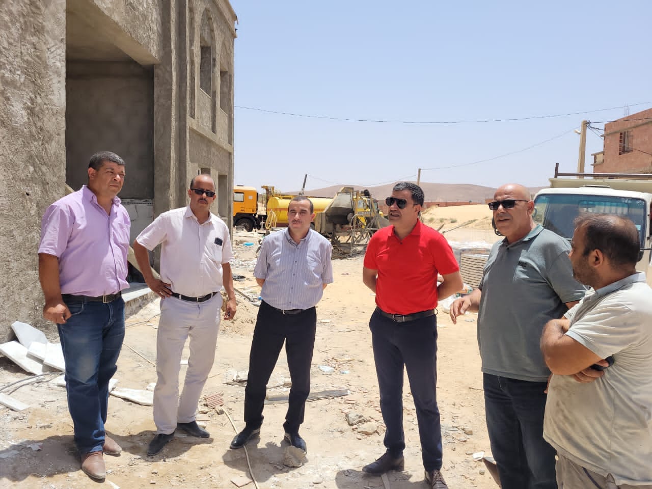 – المحطة الأولى: معاينة سيرورة أشغال انجاز مدرسة ابتدائية بحي 20 أوت ببوسعادة.