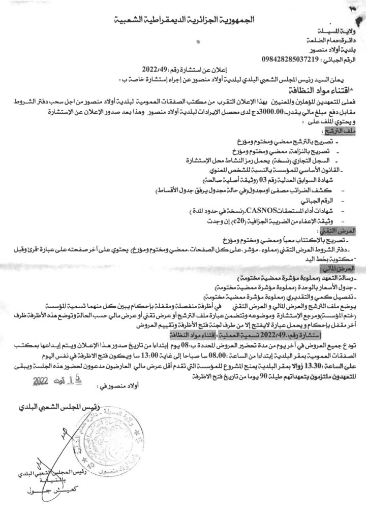 إجراء استشارة خاصة بـ اقتناء مواد النظافة