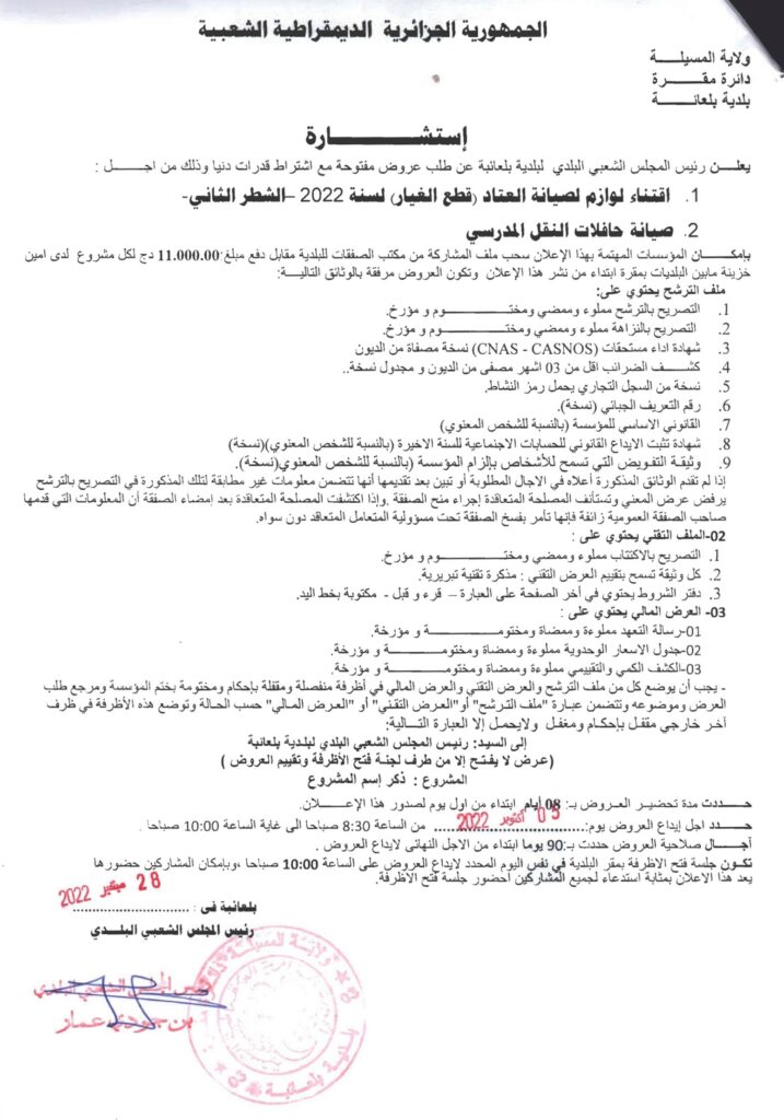 طلب عروض مفتوحة مع اشتراط قدرات دنيا وذلك من أجل: