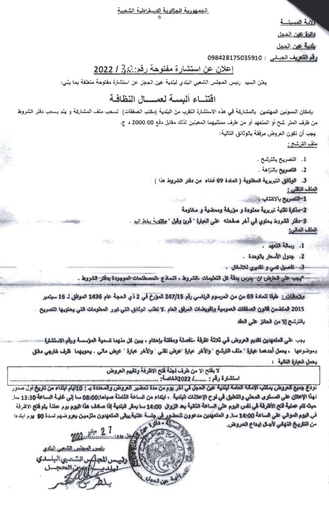استشارة مفتوحة متعلقة بما يلي: اقتناء ألبسة لعمال النظافة29 سبتمبر، 20220 14 شاركها فيسبوك X مشاركة عبر البريد طباعة