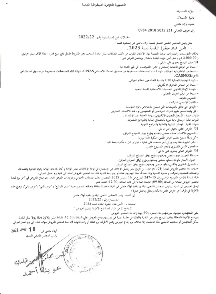 استشارة قصد: تأمين عتاد حظيرة البلدية لسنة 202325 ديسمبر، 20220 35 شاركها فيسبوك X مشاركة عبر البريد طباعة