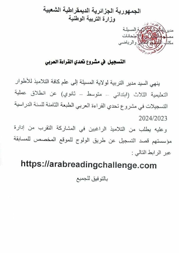 إعلان/ التسجيل في مشروع تحدي القراءة العربي