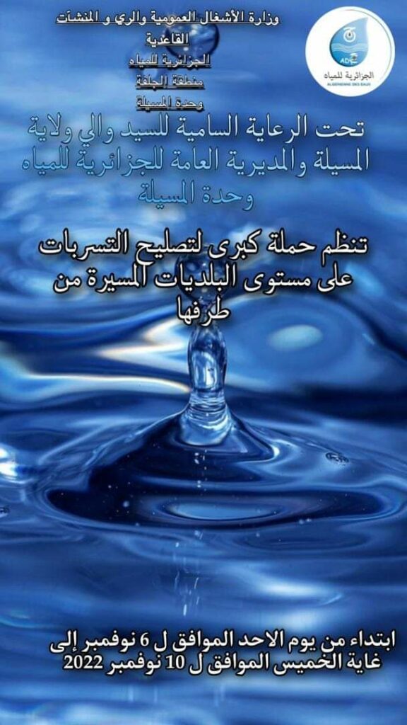 إعلان/ الجزائرية للمياه ولاية المسيلة