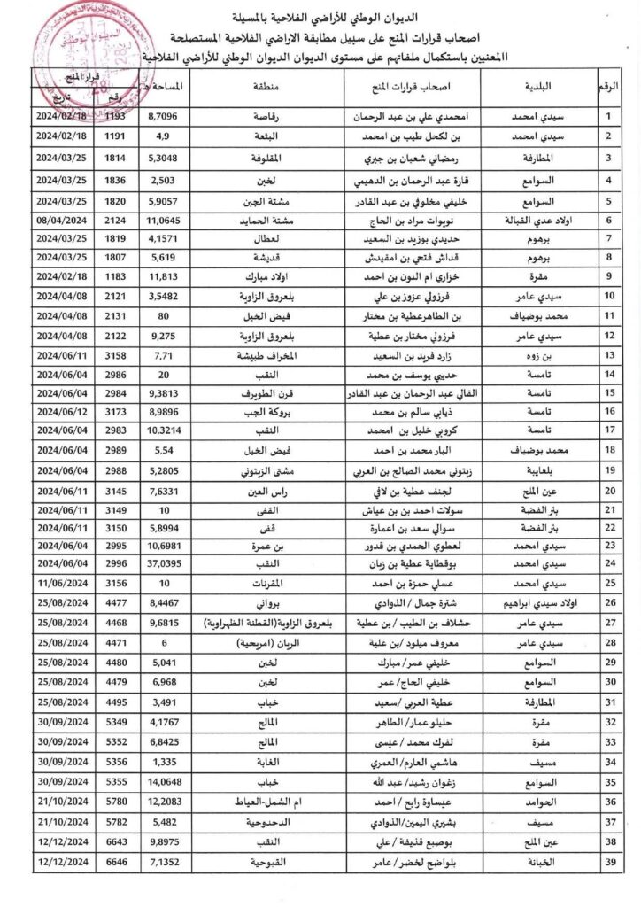 إعلان/ المديرية الولائية للديوان الوطني للأراضي الفلاحية بالمسيلة