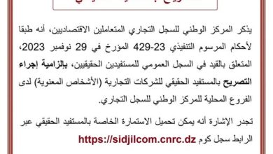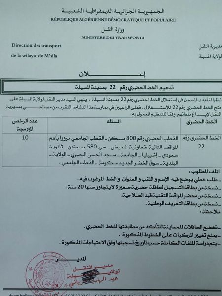 إعلان / تدعيم الخط الحضري رقم 22 بمدينة المسيلة