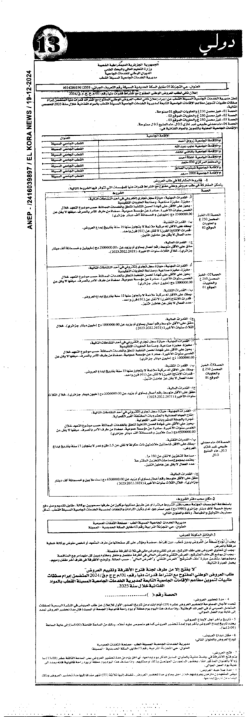 إعلان ثاني لطلب العروض الوطني المفتوح 01/م.خ.ج.م.ق/2024 مديرية الخدمات الجامعية بالمسيلة القطب