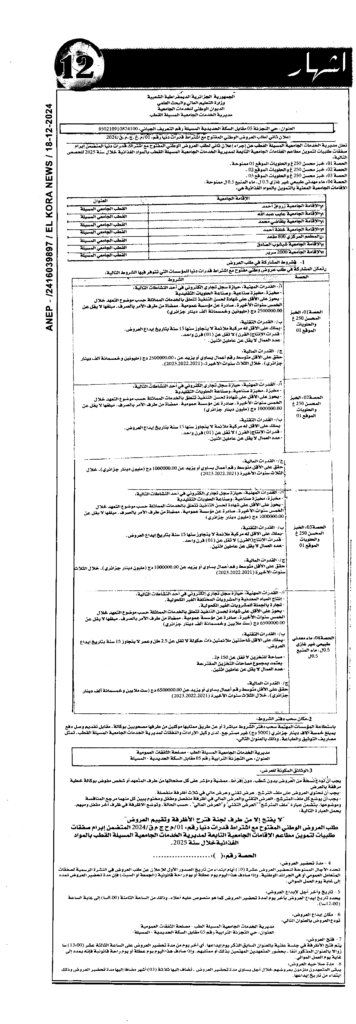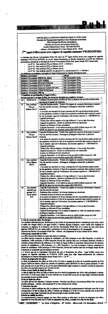 إعلان ثاني لطلب العروض الوطني المفتوح لصفقات طلبيات تموين مطاعم الإقامات الجامعية بالمواد الغذائية لسنة 2025/ مديرية الخدمات الجامعية بالمسيلة القطب
