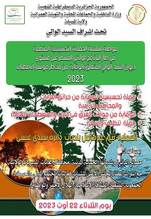إعلان/ حملة تحسيسية كبرى للوقاية من حرائق الغابات والمحاصيل الزراعية بدائرة سيدي عيسى