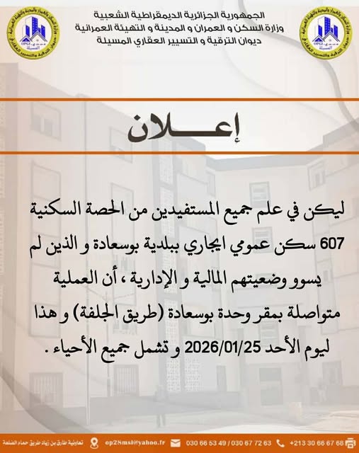 إعلان/ ديوان الترقية والتسيير العقاري لولاية المسيلة
