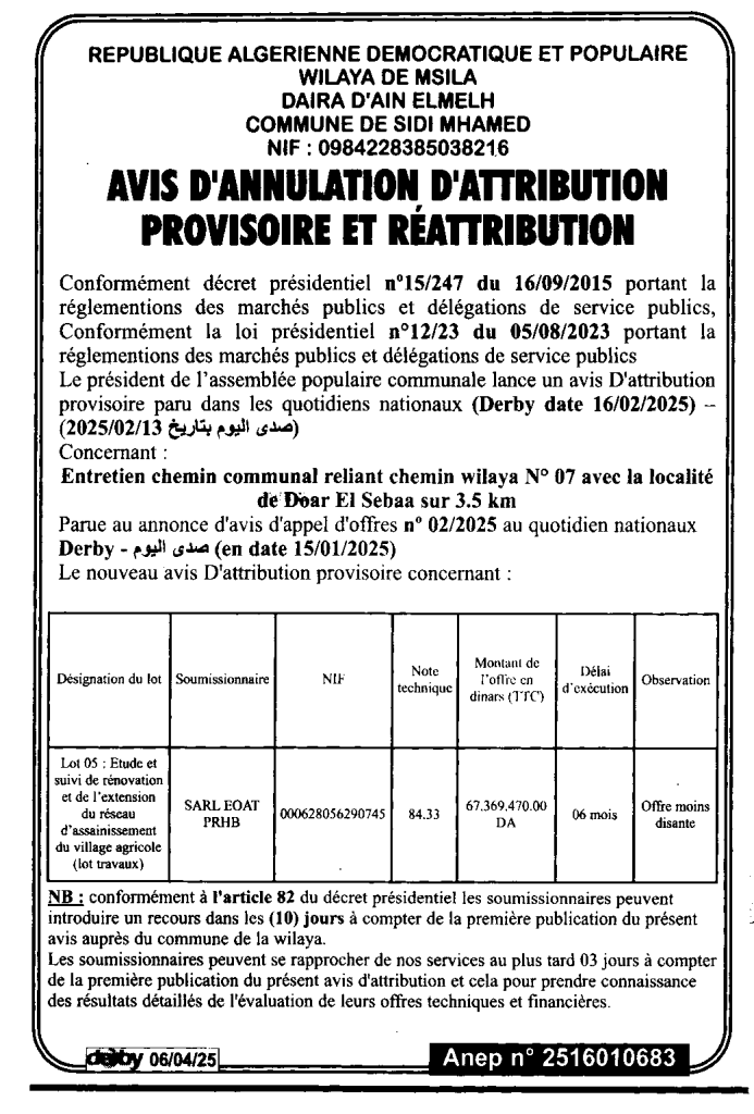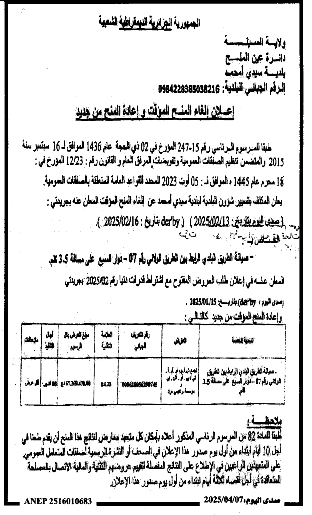 صيانة الطريق البلدي الرابط بين الطريق الولائي رقم 07 دوار السبع على مسافة 3.5 كلم6 أبريل، 20250 15 شاركها فيسبوك X مشاركة عبر البريد طباعة