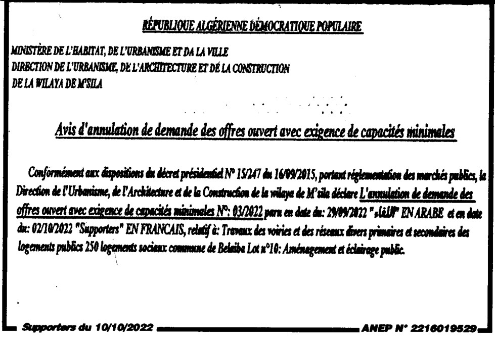 إعلان عن إلغاء مديرية التعمير والهندسة المعمارية