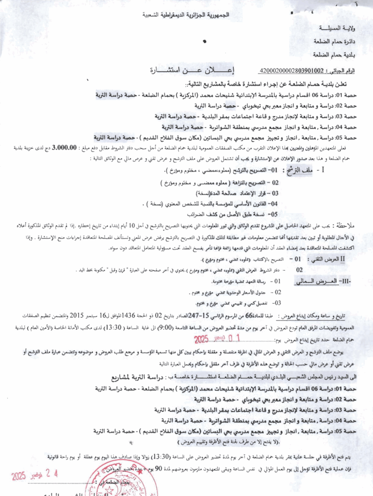 إعلان عن استشارة/ بلدية حمام الضلعة