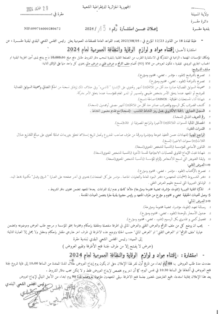 استشارة لأجل: اقتناء مواد ولوازم الوفاية والنظافة العمومية لعام 20244 مارس، 20240 18 شاركها فيسبوك X مشاركة عبر البريد طباعة