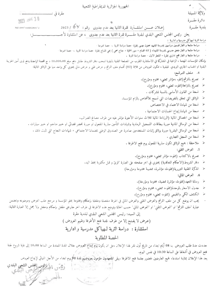 استشارة من أجل: دراسة التربة لهياكل مدرسية وادارية5 نوفمبر، 20230 4 شاركها فيسبوك X مشاركة عبر البريد طباعة