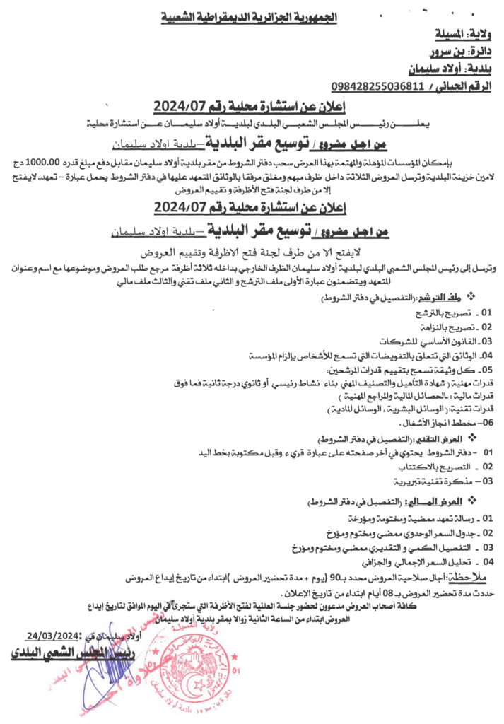 استشارة من أجل: توسيع مقر البلدية