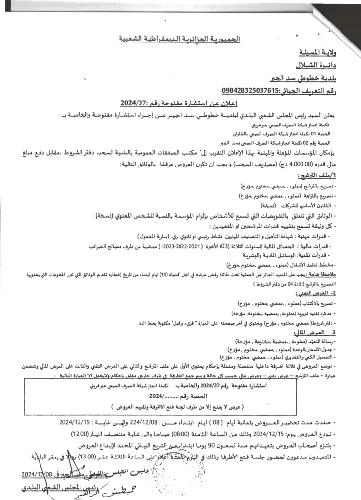 استشارة من أجل: تكملة انجاز شبكة الصرف الصحي بالشتران10 ديسمبر، 20240 8 شاركها فيسبوك X مشاركة عبر البريد طباعة