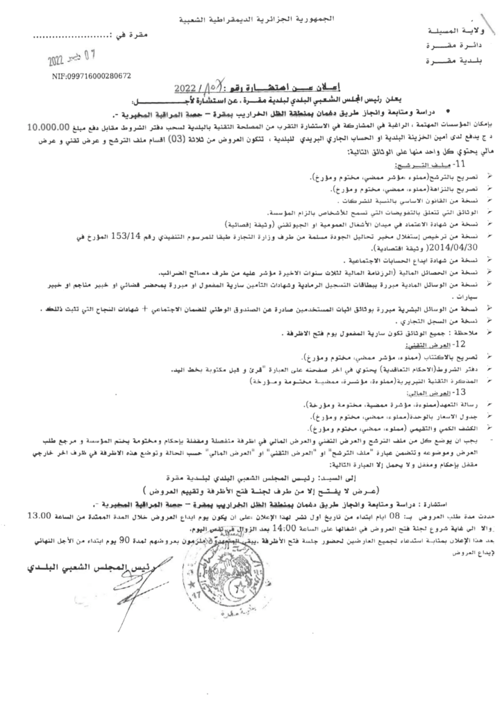 استشارة لأجل: دراسة ومتابعة وإنجاز طريق دغمان بمنطقة الظل الخراريب -حصة المراقبة المخبرية-8 ديسمبر، 20220 60 شاركها فيسبوك X مشاركة عبر البريد طباعة