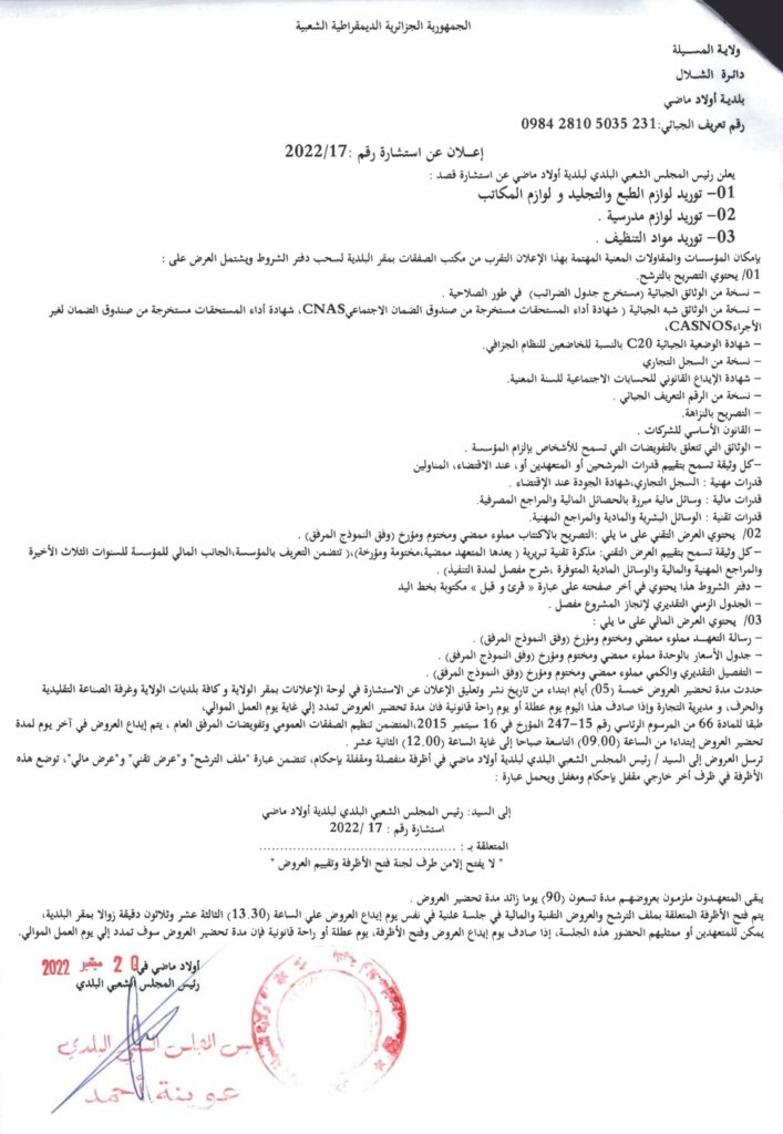 استشارة قصد:توريد لوازم الطبع والتجليد ولوازم المكاتبتوريد لوازم مدرسيةتوريد موارد التنظيف21 سبتمبر، 20220 38 شاركها فيسبوك X مشاركة عبر البريد طباعة