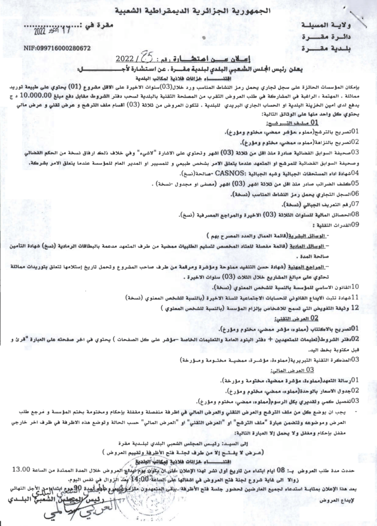 استشارة لأجل: اقتناء خزانات فلاذية لمكاتب البلدية19 أكتوبر، 20220 67 شاركها فيسبوك X مشاركة عبر البريد طباعة