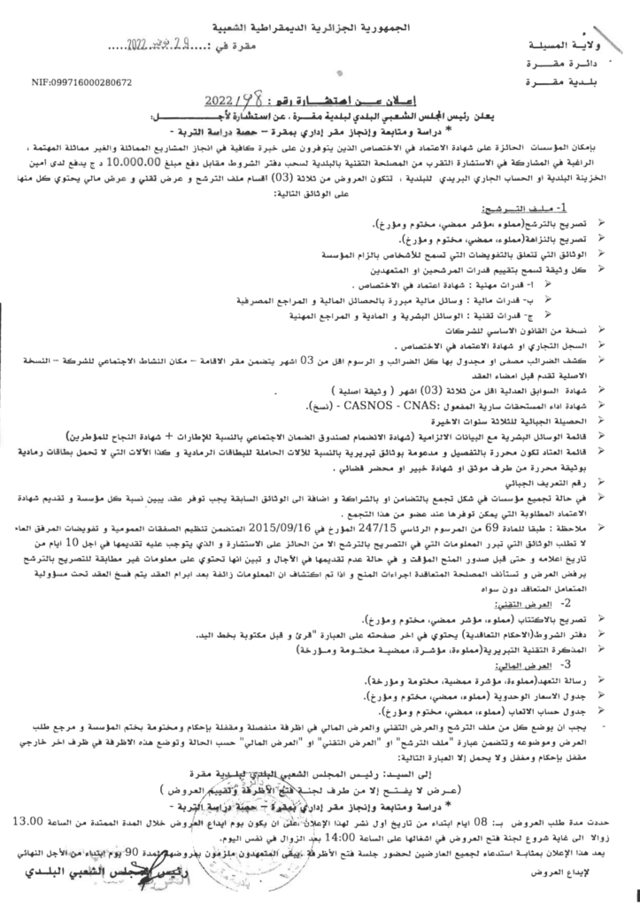 استشارة لأجل: دراسة ومتابعة وإنجاز مقر إداري -حصة دراسة التربة-30 نوفمبر، 20220 16 شاركها فيسبوك X مشاركة عبر البريد طباعة